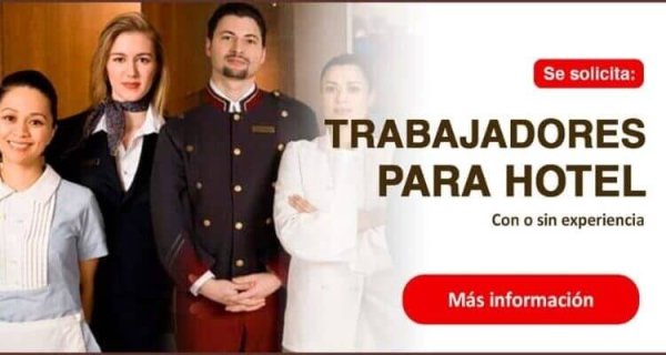 las ventajas de un hotel es que puedes conseguir trabajo rápido y distintas áreas como recepcionista, cocinero(a),animador, socorrista o asistente de piscina en seguridad o mantenimiento como también camarero o bartman.Estos tipos de trabajos son mejores pagados en lo que se refiere al trabajo de mano de obra de oficios distintos. Pero, si estas decidida(o) a encontrar un trabajo le sugerimos leer detenidamente los requisitos principales para trabajar en hotel(estos requisitos son manifestados por personas con experiencia en hoteles), para luego ver las diferentes ofertas laborales .